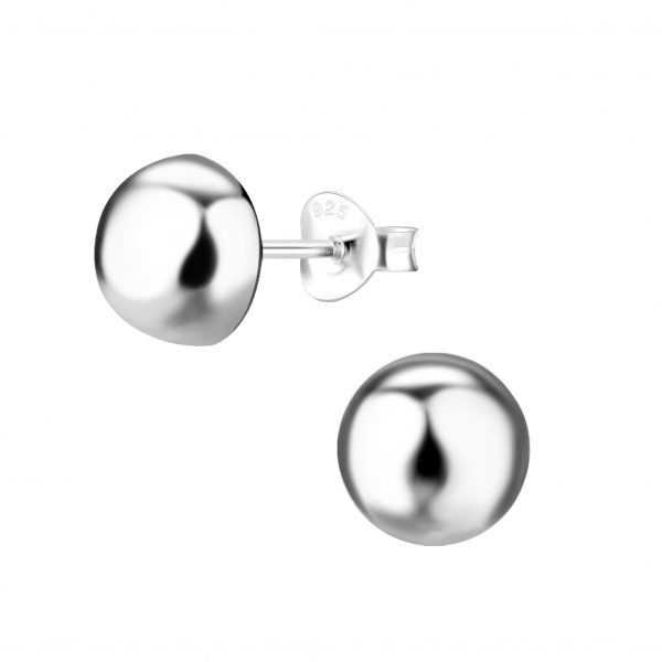 8mm Silver Half Ball Stud Earrings