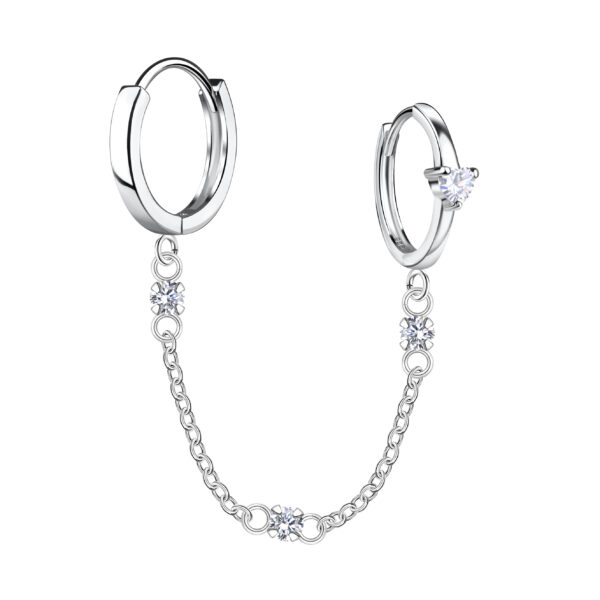 Silver Heart Double Huggie Earrings with Chain