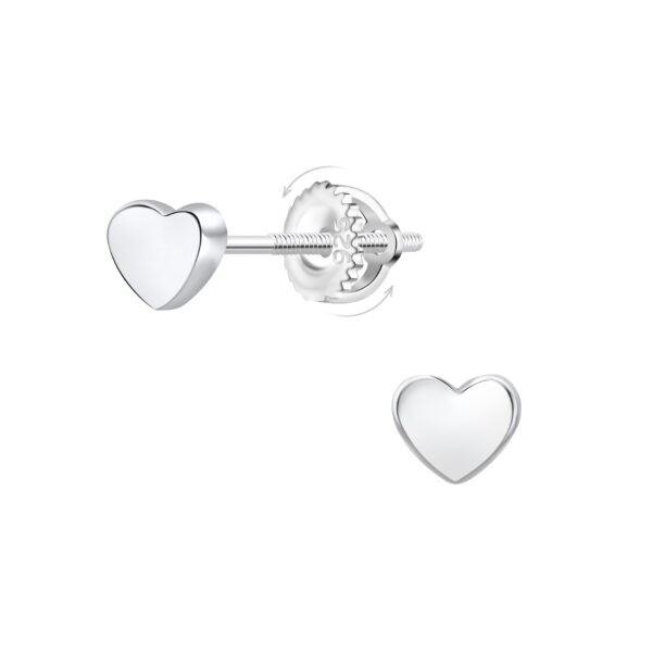 Silver Heart Screw Back Earrings
