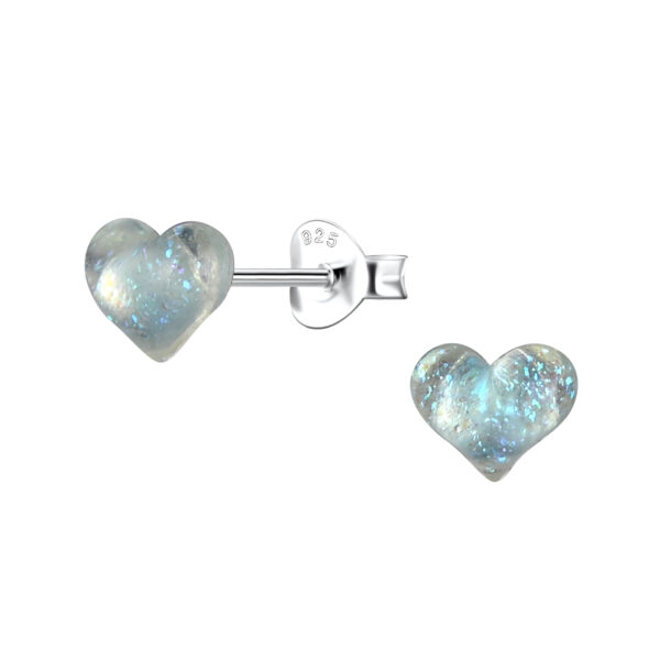 Silver Stud Earrings with Resin Heart