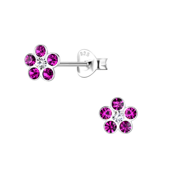 Silver Crystal Flower Stud Earrings