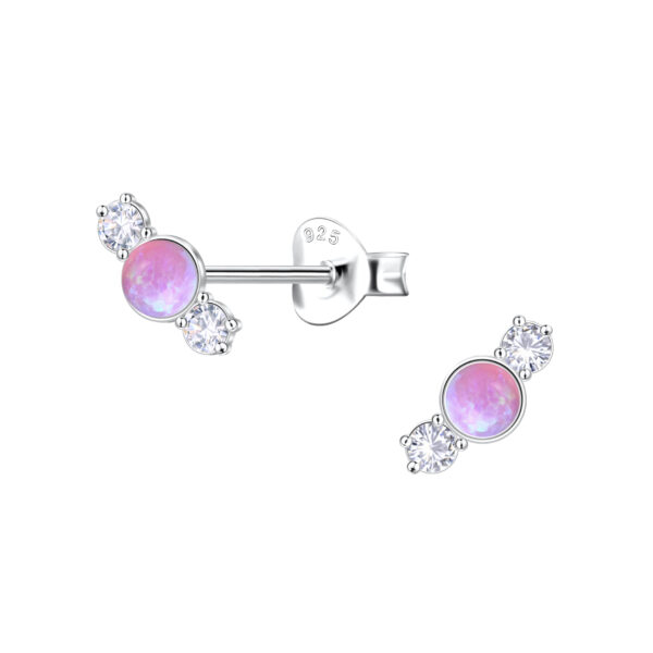 Silver Geometric Opal Stud Earrings
