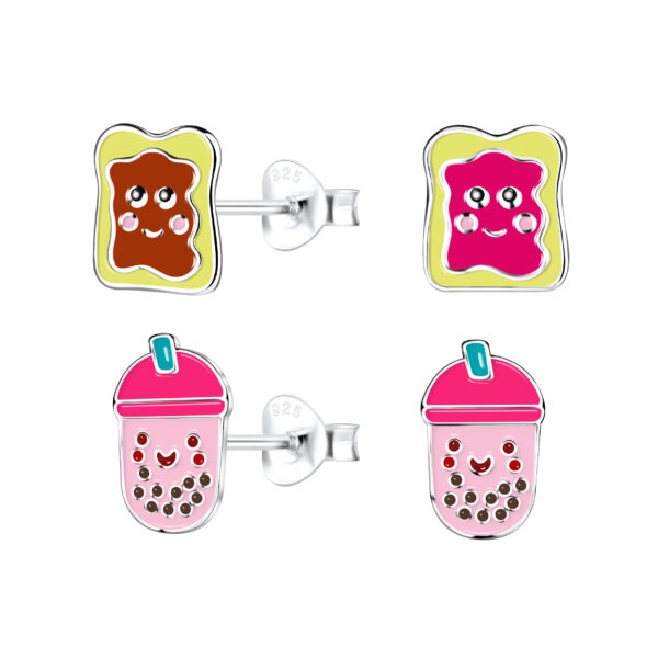 Silver Breakfast Treats Stud Earrings Set