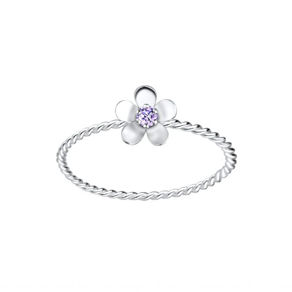 Silver Flower Cubic Zirconia Ring