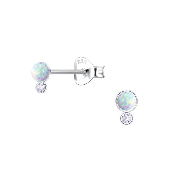 Silver Geometric Opal Stud Earrings