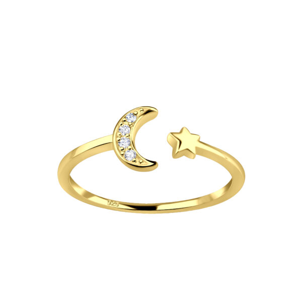 Silver Opened Moon and Star Ring