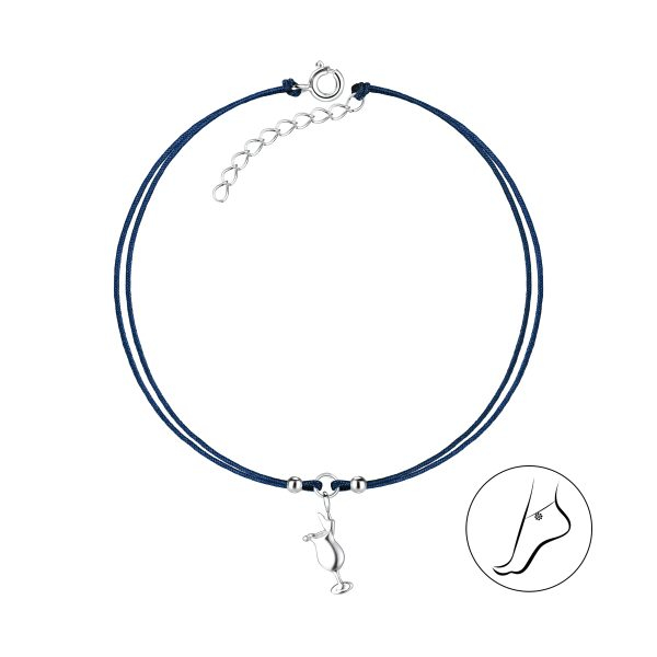 Silver Cocktail Glass Cord Anklet