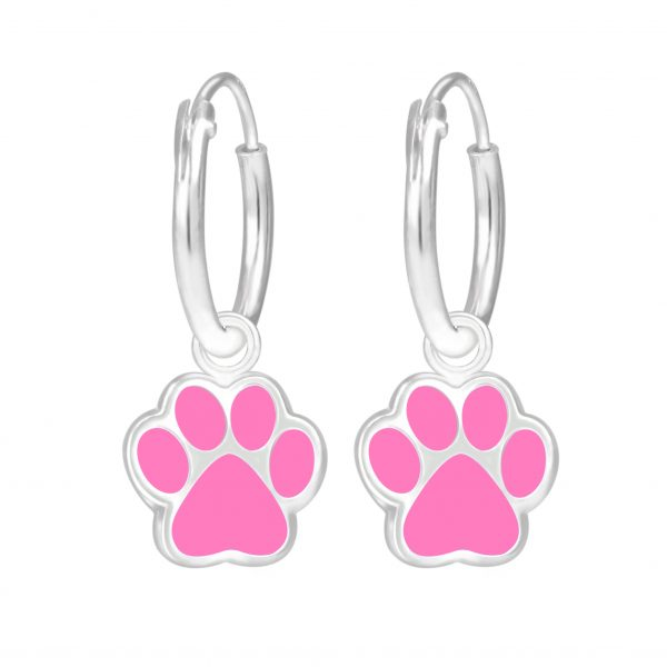 Silver Paw Print Charm Hoop Earrings