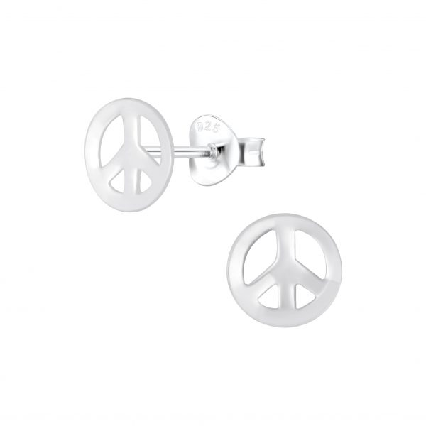 Silver Peace Symbol Stud Earrings