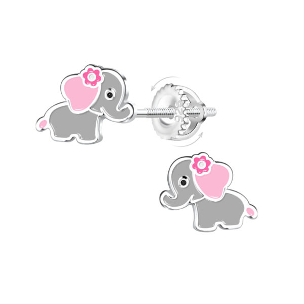 Silver Elephant Screw Back Earrings