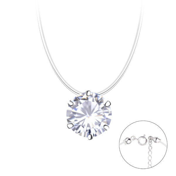 8mm Round Cubic Zirconia Silver Invisible Necklace