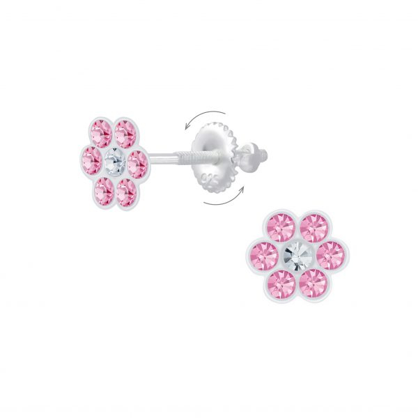 Silver Flower Crystal Screw Back Earrings