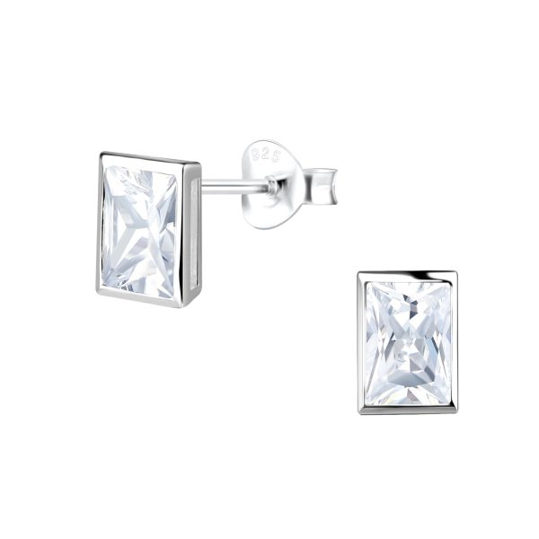 4x6mm Baguette Cubic Zirconia Silver Stud Earrings