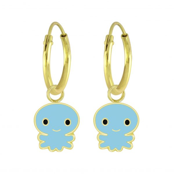 Silver Octopus Charm Hoop Earrings