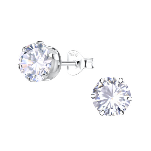 7mm Round Cubic Zirconia Silver Stud Earrings