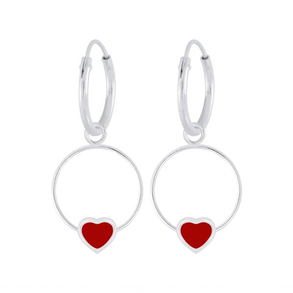 Silver Heart Wire Charm Hoop Earrings