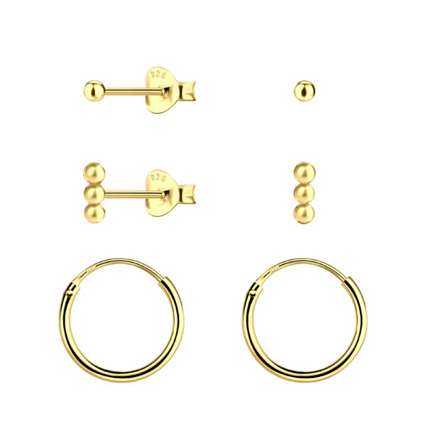 Silver Ball Stud and Hoop Earrings Set