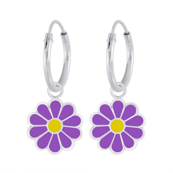 Silver Daisy Flower Charm Hoop Earrings