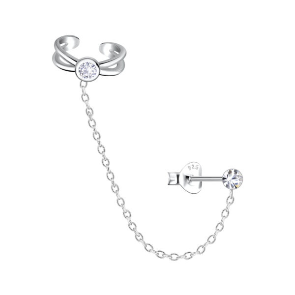 3mm Crystal Silver Stud Earrings and Cross Ear Cuff with Chain