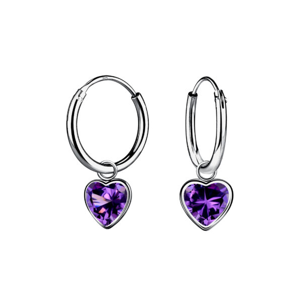 6mm Heart Cubic Zirconia Silver Charm Hoop Earrings