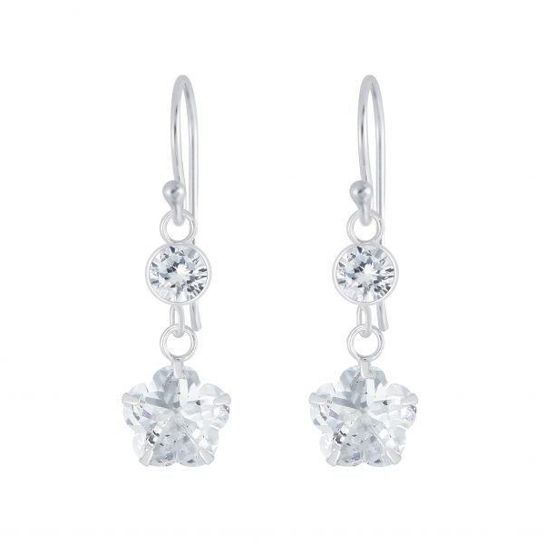Silver Flower Cubic Zirconia Earrings