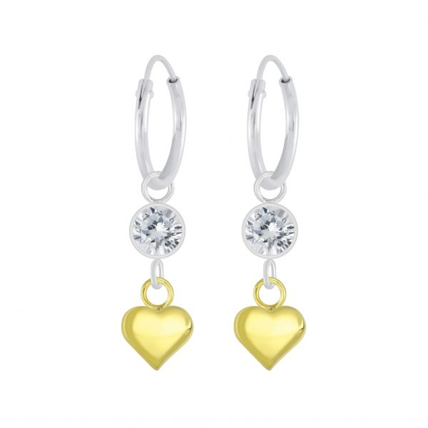 Silver Heart Charm Hoop Earrings