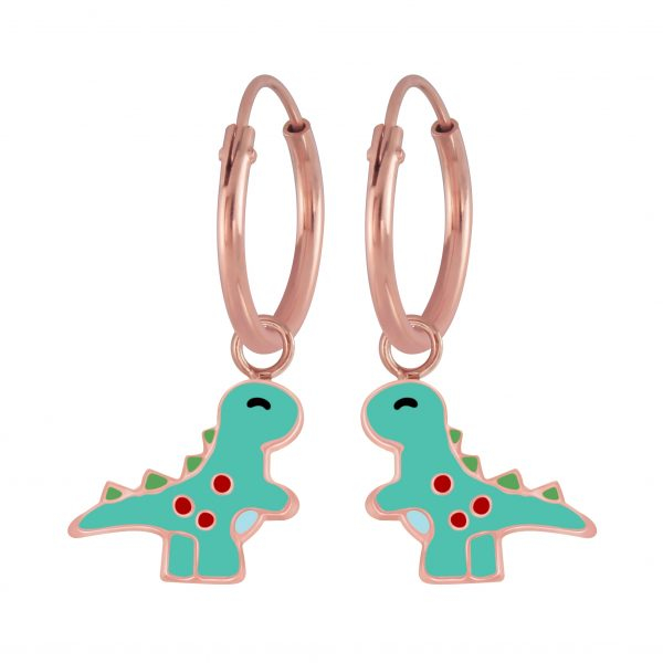Silver Dinosaur Charm Hoop Earrings