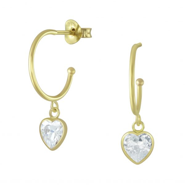 Silver Half Hoop with Hanging Heart Stud Earrings
