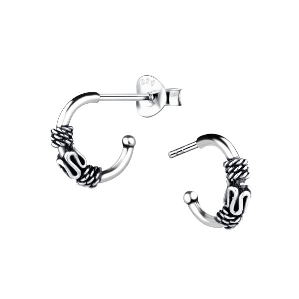 Silver Half Hoop Stud Earrings