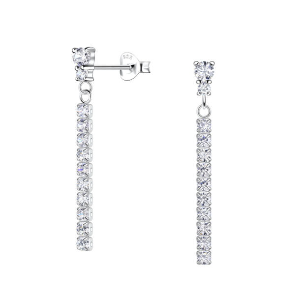 Silver Double Round Stud Earrings with Hanging Tennis Chain