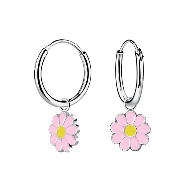 Silver Daisy Flower Charm Hoop Earrings