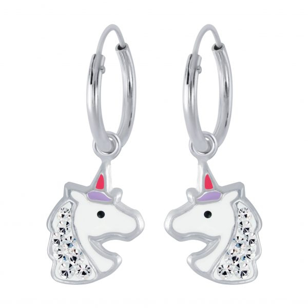 Silver Unicorn Charm Hoop Earrings