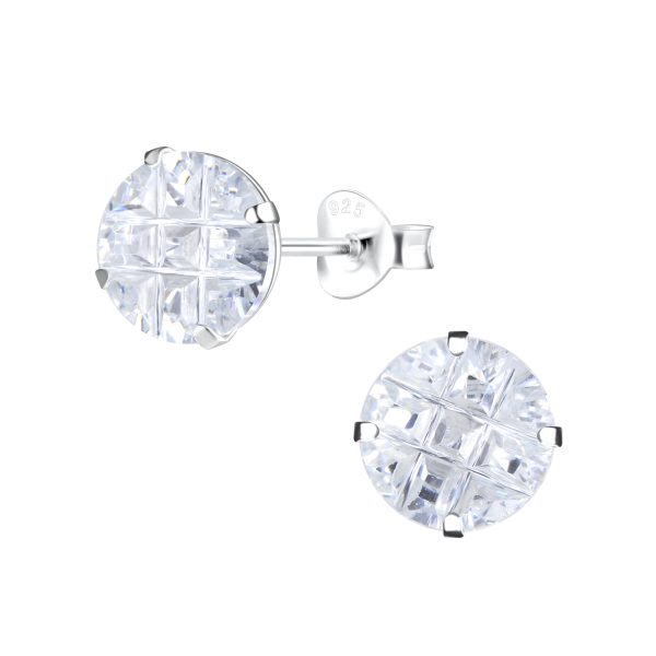 8mm Round Checkerboard Cubic Zirconia Silver Stud Earrings