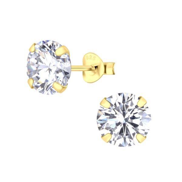 8mm Round Cubic Zirconia Silver Stud Earrings