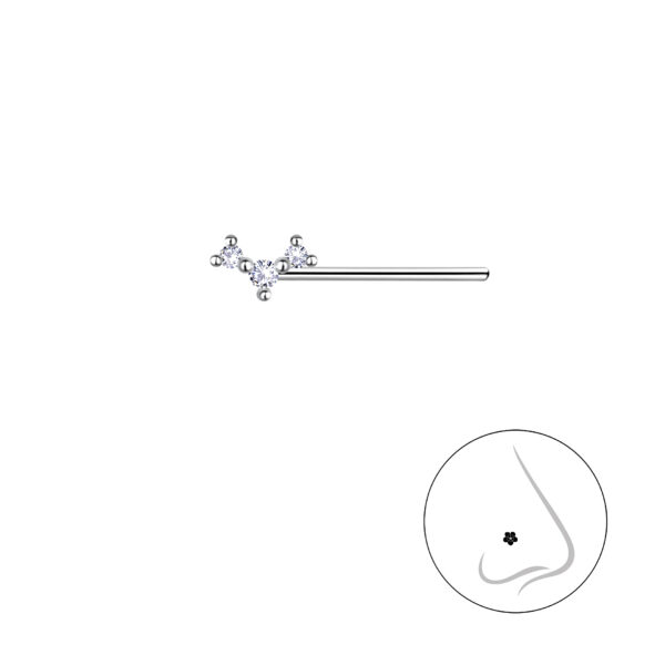 Silver Three Stones Nose Stud