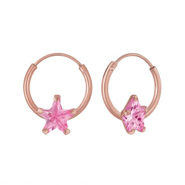 6mm Star Cubic Zirconia Silver Hoop Earrings