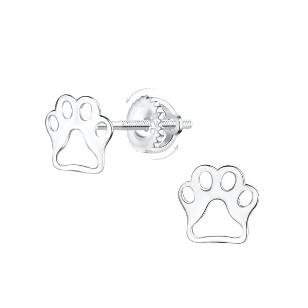 Silver Paw Print Screw Back Earrings