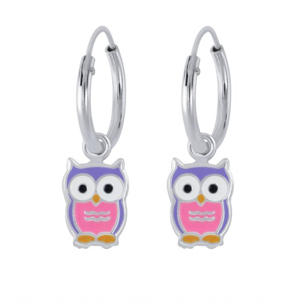 Silver Owl Charm Hoop Earrings