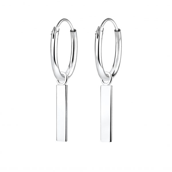 Silver Bar Charm Hoop Earrings