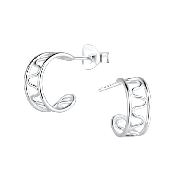 Silver Wave Stud Earrings