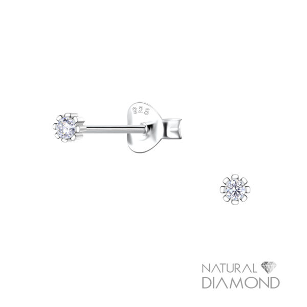 Silver Round Stud Earrings With Diamond