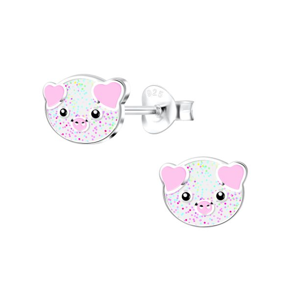Silver Pig Stud Earrings