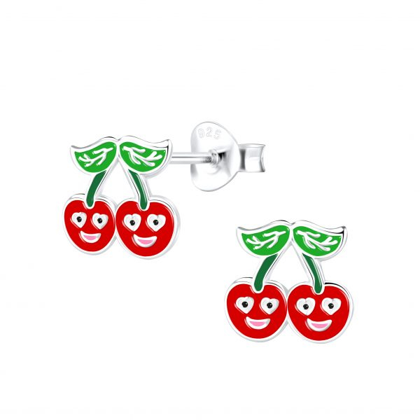 Silver Cherry Stud Earrings
