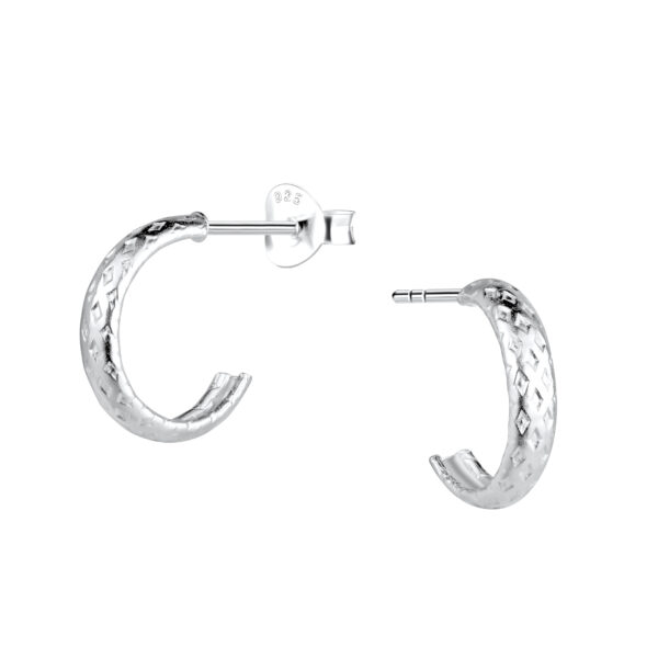 Silver Patterned Half Hoop Stud Earrings