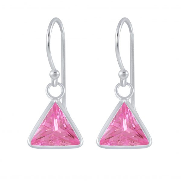 6mm Triangle Cubic Zirconia Silver Earrings