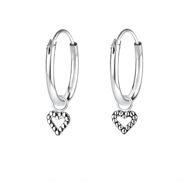 Silver Heart Charm Hoop Earrings