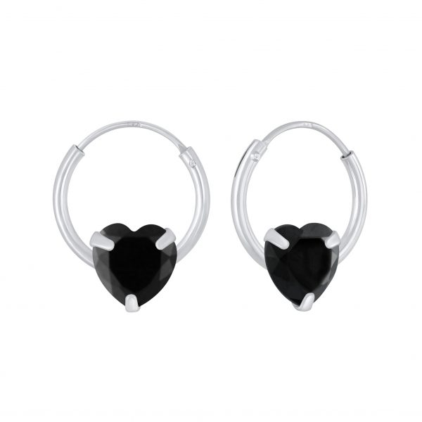 6mm Heart Cubic Zirconia Silver Hoop Earrings