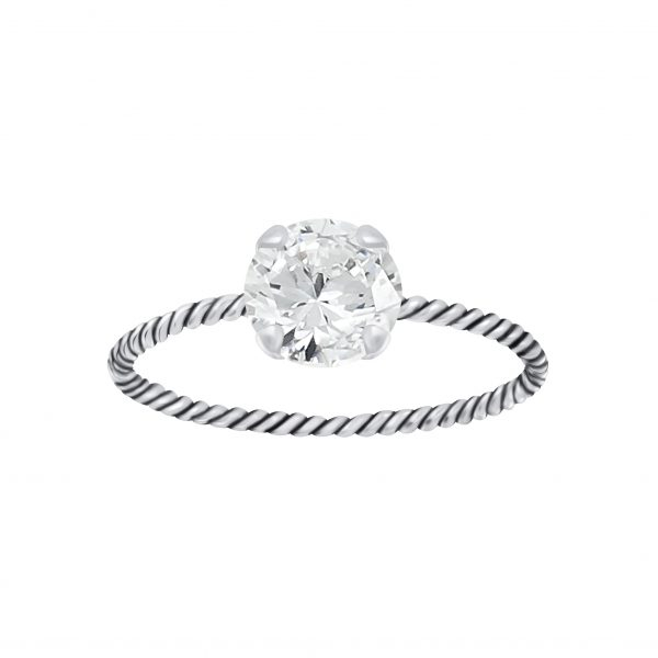 6mm Round Cubic Zirconia Silver Twisted Band Solitaire Ring