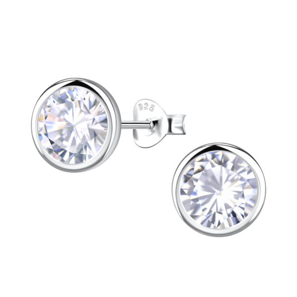 8mm Round Cubic Zirconia Silver Stud Earrings