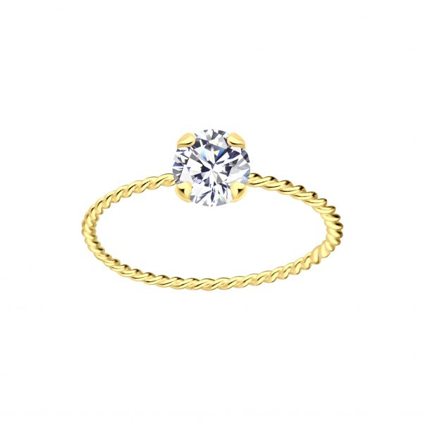 5mm Round Cubic Zirconia Silver Twisted Band Solitaire Ring